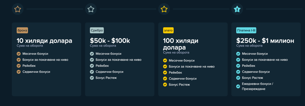 Високо оценяваме играчите, които отдавна са на нашата платформа и прекарват повече време на нея. И им го показваме не само на думи, но и с действия. Поради тази причина създадохме своя VIP клуб за редовни участници и имаме специални условия за тях, така че да засвидетелстваме отношението си към тези уникални играчи.